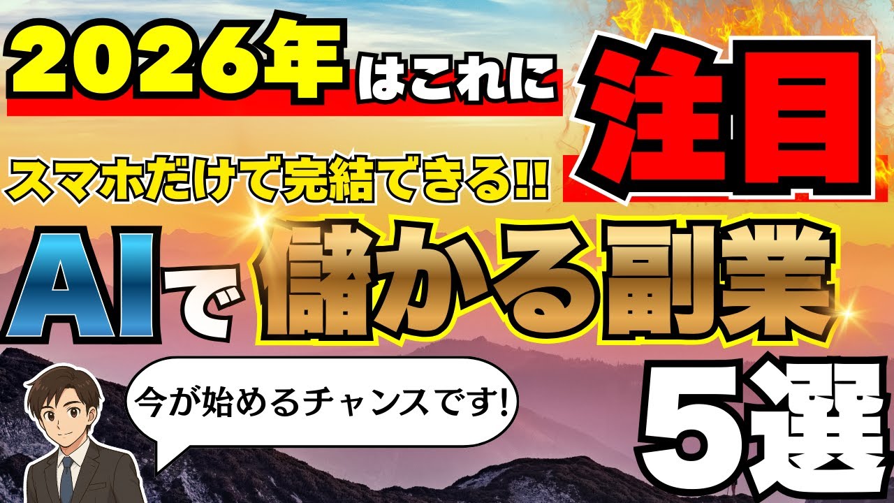 この動画では2026年におすすめのスマホだけで始められるおすすめのAI副業5選について紹介しています。