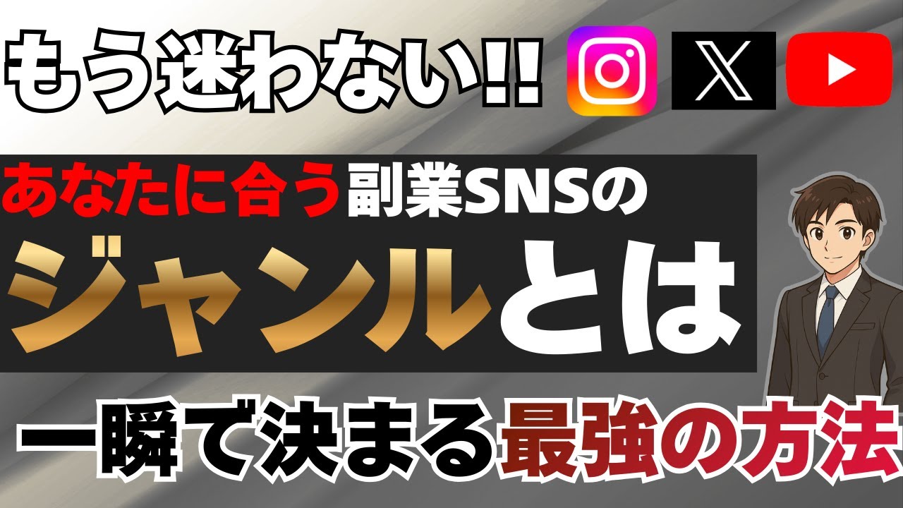この動画では「副業のSNSアカウントで何を発信すればいいのかわからない」という方に向けて、発信ジャンルが一瞬で決まる考え方やAIの活用方法について紹介しています。