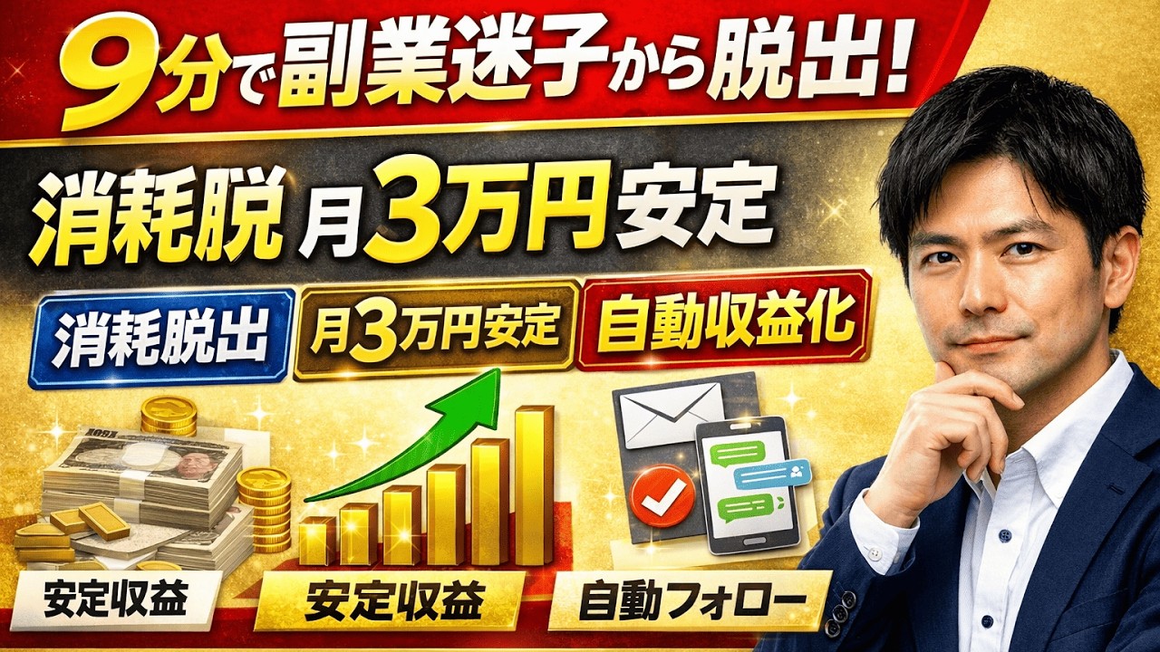 特に注目してほしいのは、多くの人が陥る「情報収集だけで終わる副業迷子状態」から抜け出す具体策です。副業で成果が出ない原因は努力不足ではなく、導線の欠如にあります。本動画では、月3万円という現実的な目標を軸に、市場理解 → 価値設計 → 発信 → 教育 → 成約という流れを分解。これにより、「何をやればいいかわからない」という状態を解消し、今日から動けるレベルまで落とし込みます。